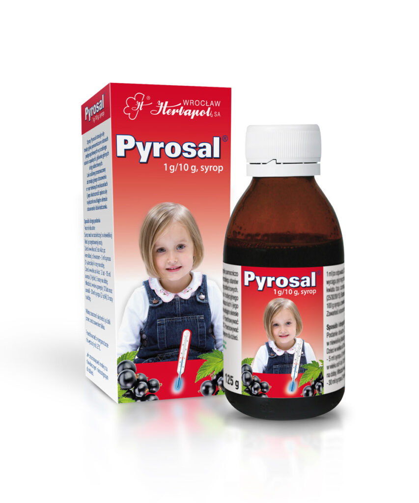 syrop, lek bez receptySyrop Pyrosal ® jest preparatem zawierającym wyciąg z: kory wierzby, kwiatu bzu czarnego, kwiatostanu lipy oraz liścia podbiału.